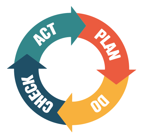 Il sistema di gestione applicato è ispirato al Ciclo di Deming, ovvero un circolo continuo di fasi riassunte in 4 macrosettori: